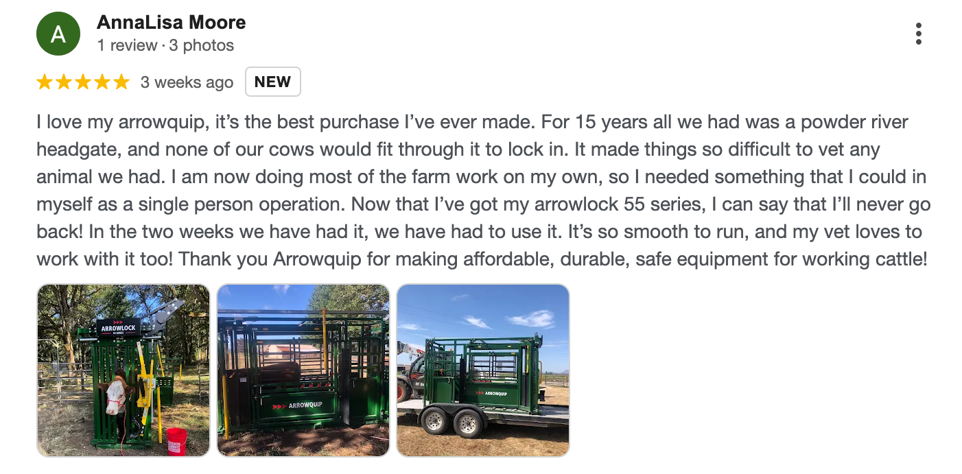 Rancher operating head gate handle of Arrowlock 75 series squeeze chute to catch and secure brown cow